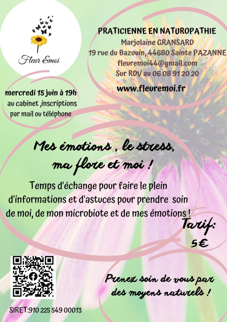 Pour en savoir plus , je te propose un temps d’information et d’échange autour du Microbiote, de son rôle important, du lien avec notre stress, nos émotions. Je te donnerais des conseils pour enrichir ton microbiote !