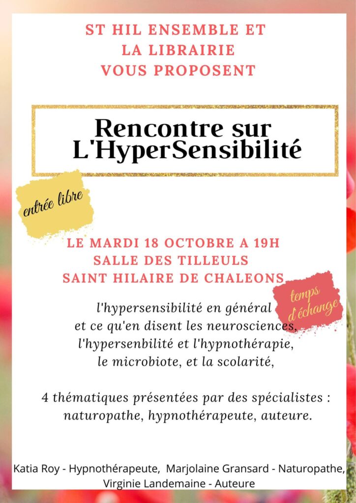 L’association « ST HIL ENSEMBLE » et la librairie vous propose une RENCONTRE SUR L’HYPERSENSIBILITE.